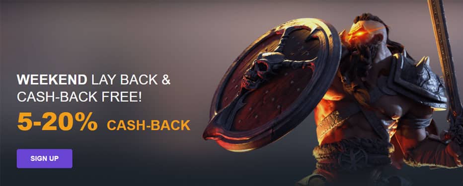 Cashback of 5% – 20% is credited on Monday with wagering requirement 5-30 times depending on your VIP Level.